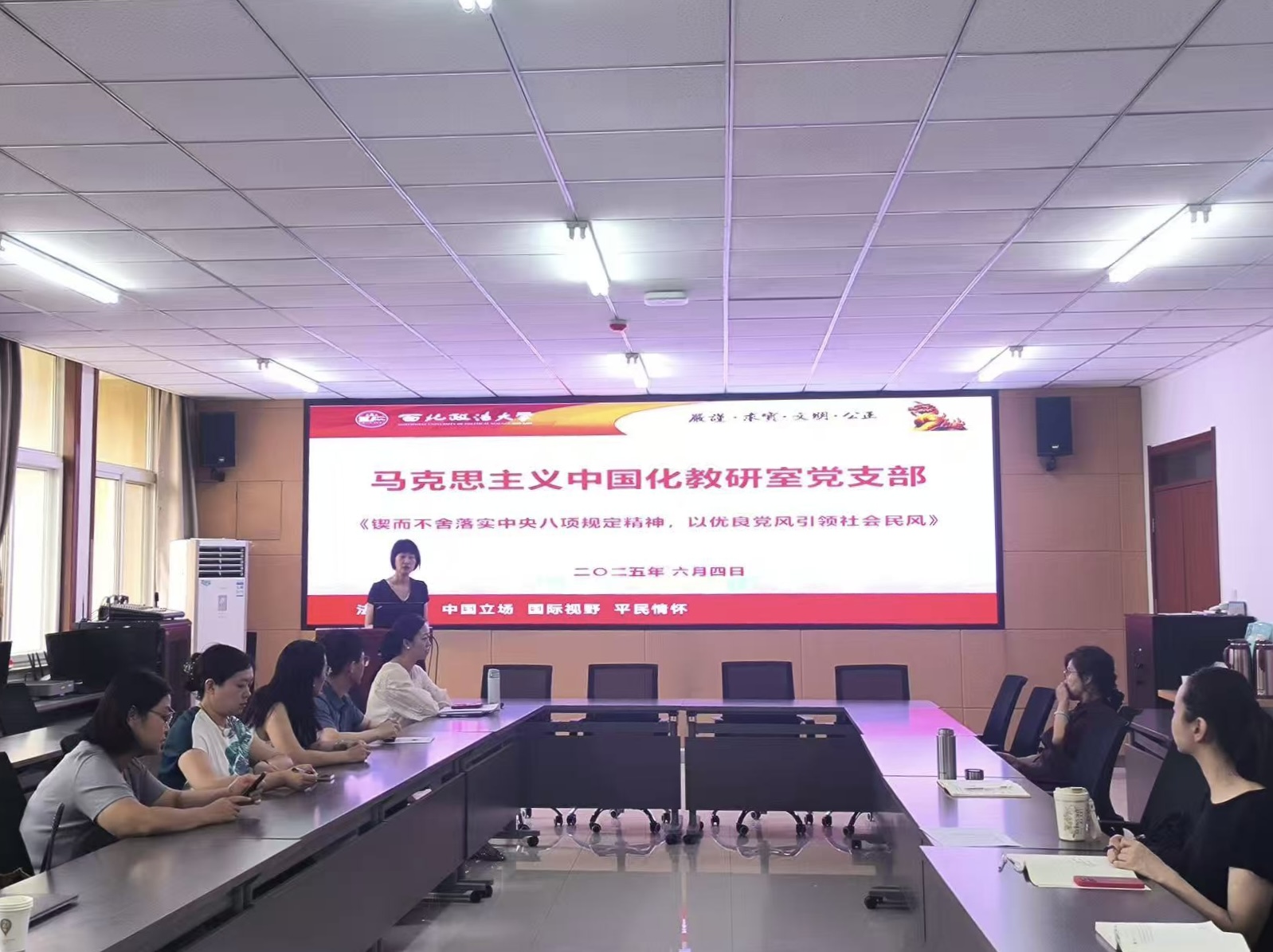 中国化教研室党支部开展“深入贯彻中央八项规定精神学习教育”主题党日活动,支部书记赵金莎及全体党员参加。