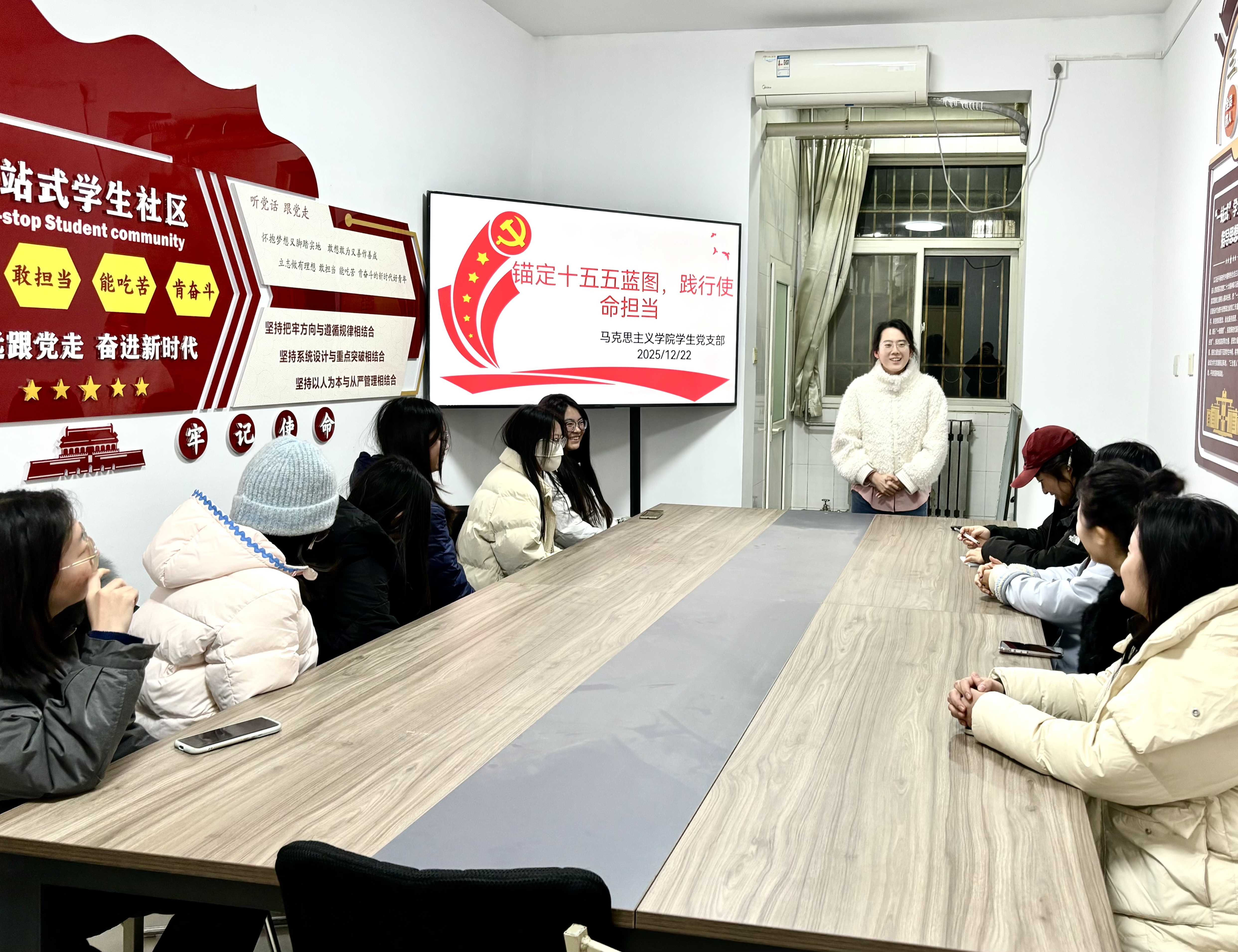 为深入学习贯彻党的二十届四中全会精神,12月22日晚,做爱视频 学生党支部于11号公寓“一站式”学生社区开展“锚定十五五蓝图,践行使命担当”主题党日活动。