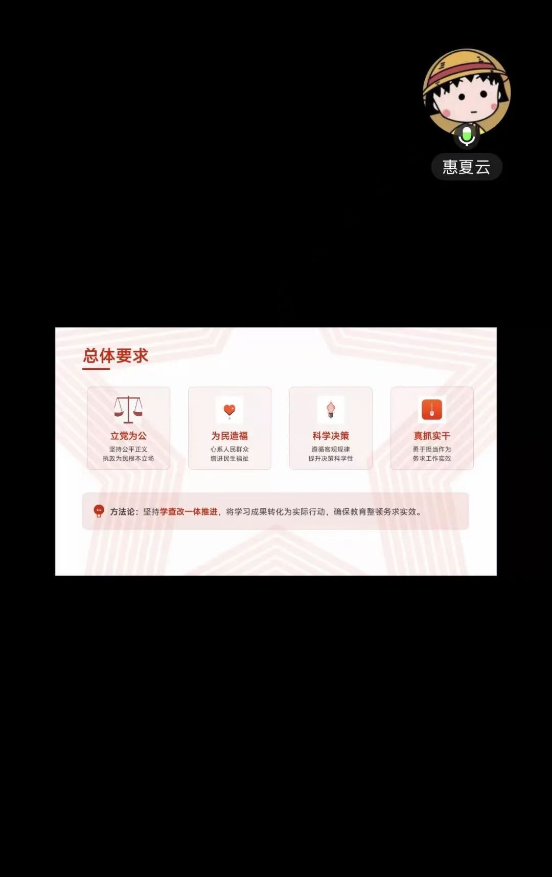 第二党小组以线上会议形式开展学习,由惠夏云同志领学正确政绩观的实践路径与具体要求,围绕“什么是真正的政绩”、“如何创造经得起检验的实绩”等话题进行深入解读,引导党员在学习中找准方向、明确标准。