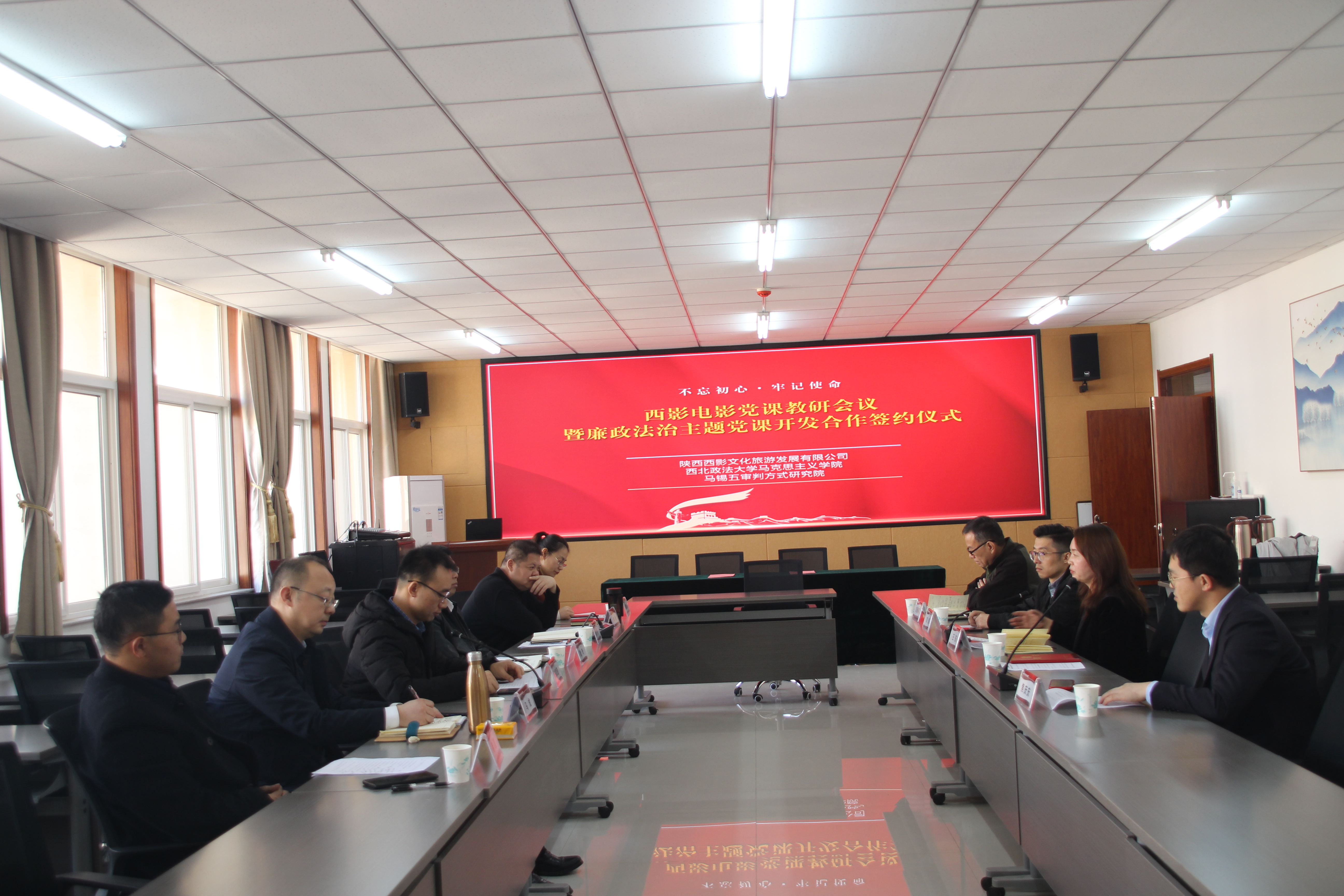会议室召开电影党课教研会议并举行廉政法治主题党课合作开发签约仪式。我校纪委副书记康鹏,做爱视频院长魏奇,党委书记刘驰,校研究生部副部长、研工部副部长、马锡五审判方式研究院院长马成,副院长王斌通,培训中心副主任刘淑宝,西影文旅副总经理王茹,影视旅游中心经理刘辉等相关工作人员参加了会议。