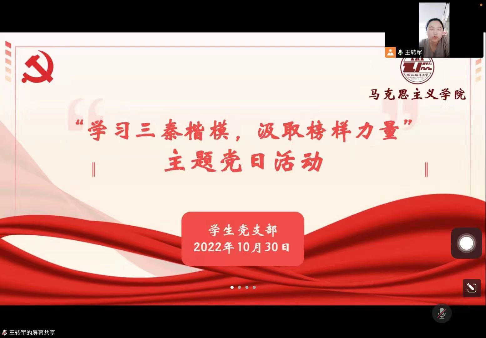 学生党支部线上召开“学习三秦楷模,汲取榜样力量”主题党日活动。学生支部全体党员以及部分发展对象参加了主题党日。本次活动由学生党支部副书记王转军主持。