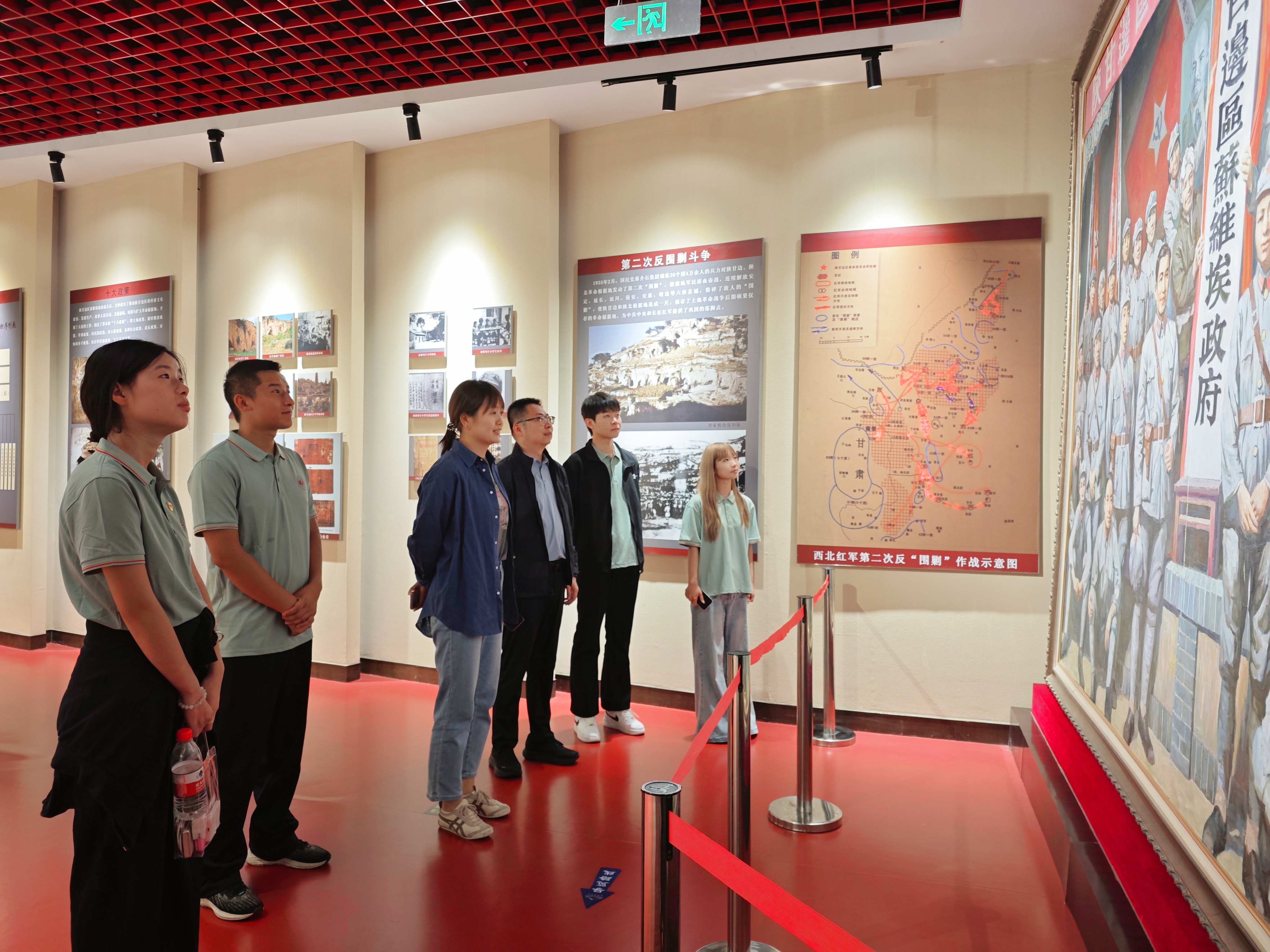 庆阳市博物馆共设有“革命历史展”等九大主题展览。实践团重点参观了革命历史展区,深入了解了刘志丹、谢子长、习仲勋等老一辈革命家在庆阳创建陕甘边革命根据地的峥嵘岁月与光辉历程。赵琳现场为同学们讲解了陕甘边革命根据地在中国革命史上的重要地位与贡献,引导学生深刻理解红色政权建立的历史逻辑与伟大意义。