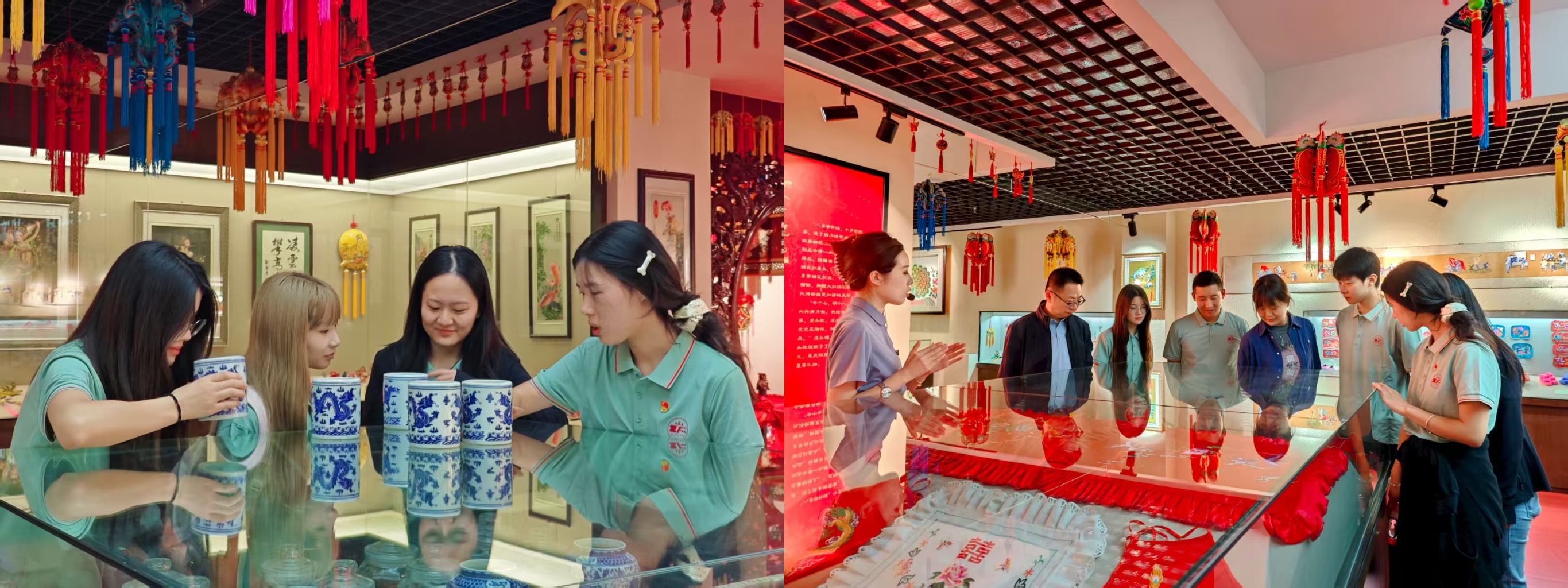 在红色民俗文化展区,实践团成员近距离观赏了庆阳非物质文化遗产——剪纸、皮影与香包艺术,沉浸式体验了陇东地区深厚的红色文化底蕴和民间手工艺的独特魅力。
