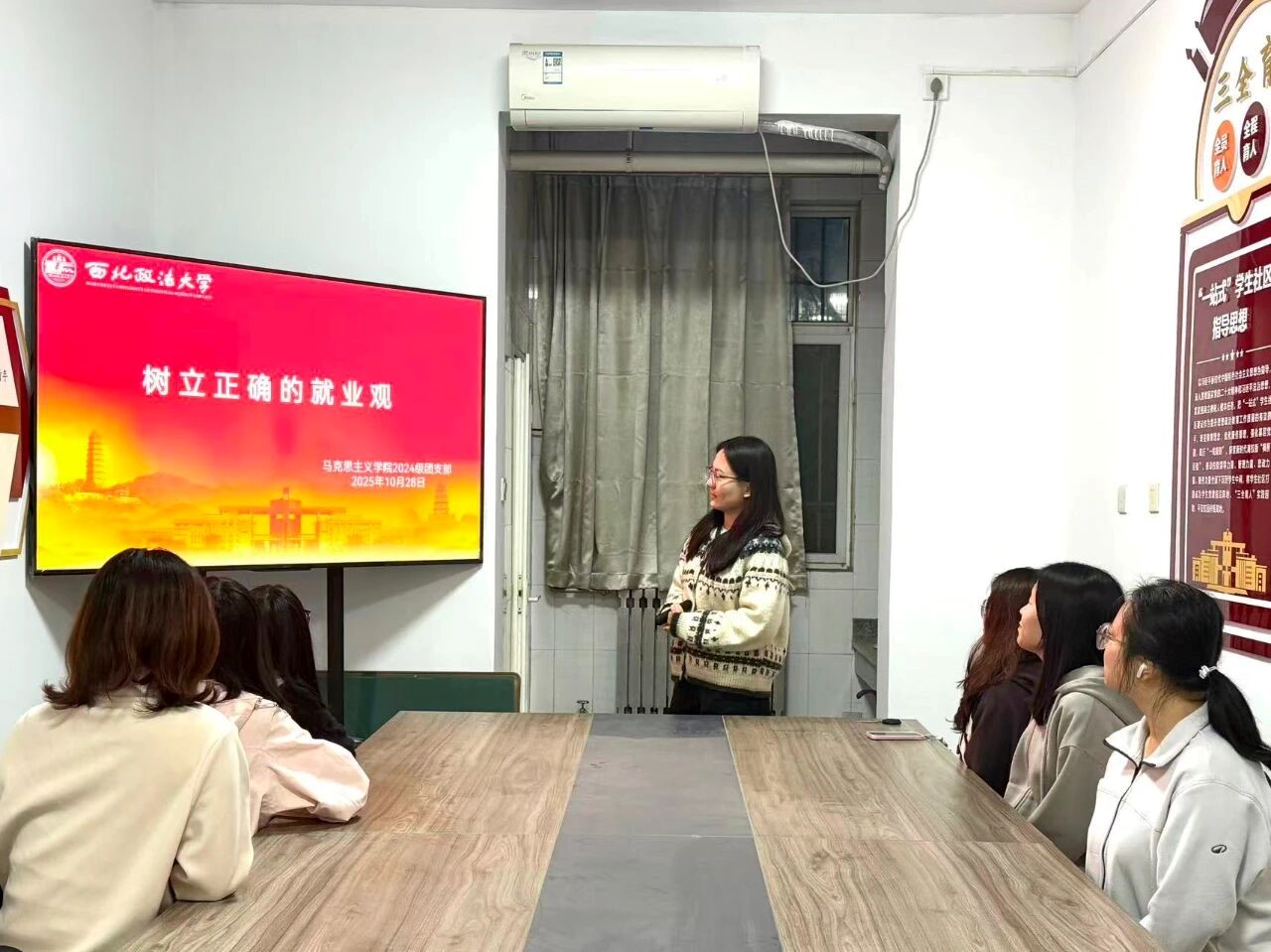 为引导广大团员认清就业形势,树立科学理性的就业观念,做爱视频 2024级团支部于11号公寓“一站式”学生社区开展“树立正确的就业观”主题团日活动。本次活动由2024级团支书张睿怡主讲,全体共青团员参与。
