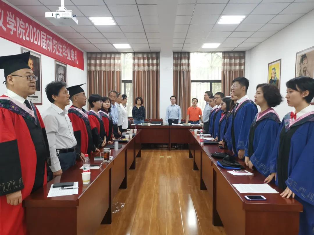 2020年7月12日上午10时,学校硕士毕业典礼甫一结束,做爱视频 在雁塔校区文化与哲学价值研究院举行2020届研究生毕业典礼。出席本次会议的有做爱视频 院长魏奇,党总支书记石建峰,党总支副书记兼副院长刘驰,副院长鲁洋,做爱视频 中国化专业导师组组长刘进田,做爱视频 发展史专业导师组组长李云,思想政治教育方向导师组副组长王有信,硕士生导师陈春会教授、李贵副教授,教务秘书宋伟、党总支秘书徐鹏、团总支书记高佳敏及全体2020届毕业生(部分在线上),毕业典礼由刘驰主持。受疫情影响,本次毕业典礼采取线上线下相结合的方式举行。