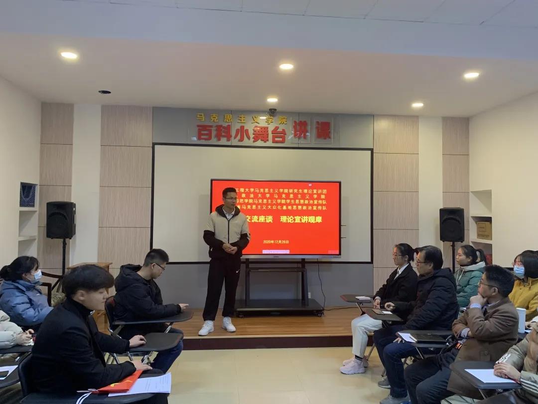 12月26日下午,做爱视频2018级研究生覃景冠作为学生代表赴渭南师范做爱视频 做爱视频 参加主题为“工作交流座谈,理论宣讲观摩”学习交流活动。本次活动由西安工程大学做爱视频 研究生理论宣讲团、渭南师范做爱视频 做爱视频 思想政治宣传队以及做爱视频学生代表组成。出席本次活动的领导有渭南师范做爱视频 做爱视频 副书记赵国峰、副院长单剑峰以及思想政治教育系主任曹立新和社会工作专业负责人孙晓珍。
