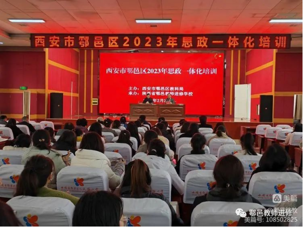 为加强鄠邑中小学思政教师队伍建设,落实立德树人根本任务,推进思政课改革创新,打造高效思政课堂,全力提升各学科教师政治素养,造就高素质的学科教师队伍,鄠邑教师进修学校于2月22日上午在人民路小学报告厅开展思政一体化第一期培训活动,全区360名思政课教师和部分学科教师参加了培训。活动由鄠邑教师进修学校副校长梁鹏主持。