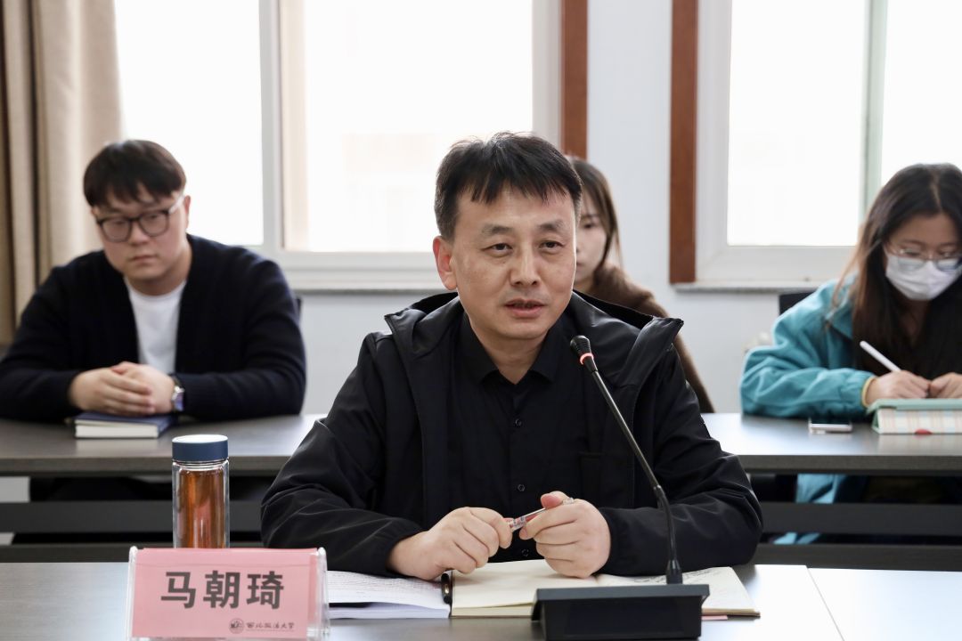 2022级学生吕浩然,结合教育教学实际发言。马朝琦指出要从打造关键课程、把握关键时期、当好关键教师、发挥关键作用等方面做好思政育人工作。