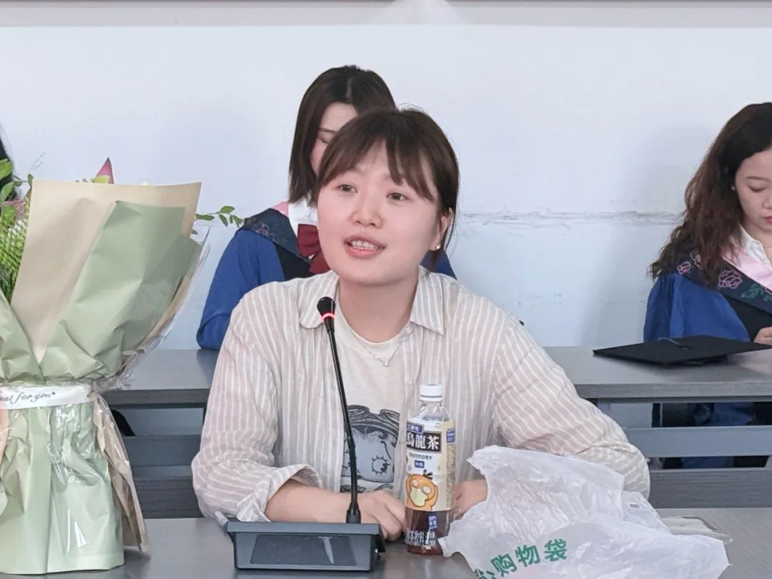 2025届毕业生闫玉洁作为学生代表发言,深情回顾研究生阶段的奋斗点滴,言语间表达着对母校及恩师的感激之情,并勉励学弟学妹们坚守理想信念,做到知行合一。
