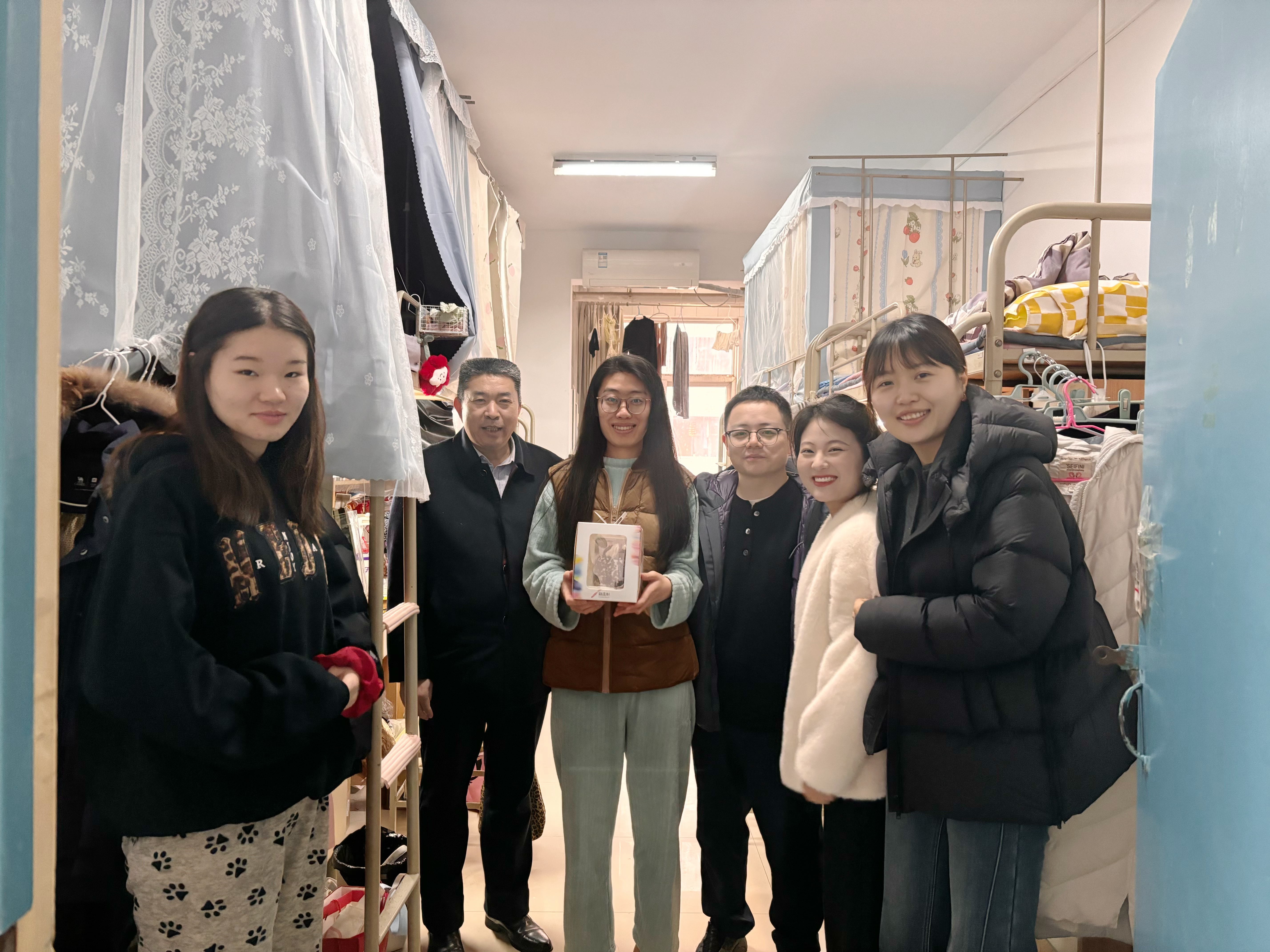 走访过程中,学院领导们向同学们致以新年祝福,送上新年礼物,并与大家亲切交谈,详细了解同学们的学习科研进展和日常生活情况,认真倾听大家在课程学习、科研安排及生活保障等方面的意见建议。其间,恰逢两位同学生日,老师们为其送上了生日蛋糕和真挚祝福,在新年将至之际为同学们增添了一份温暖与惊喜,宿舍内洋溢着温馨而愉快的节日氛围。