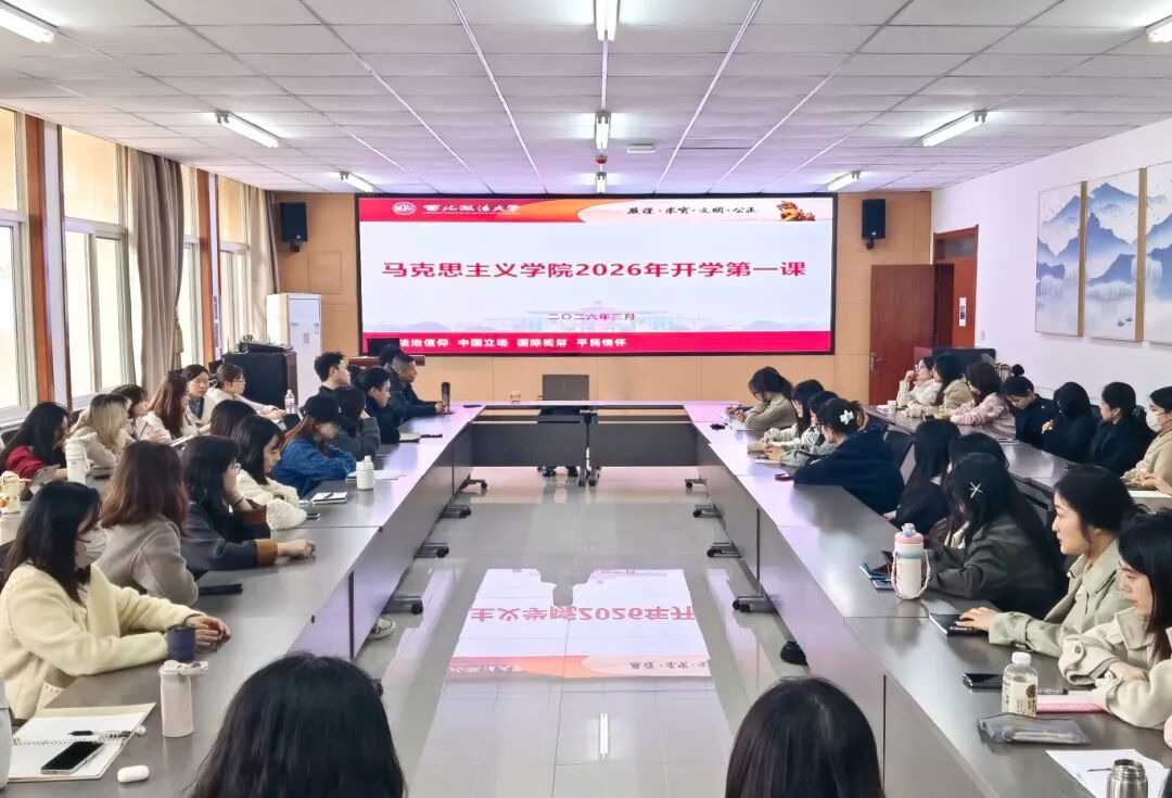 学子的专业素养与良好精神风貌。本次“开学第一课”为学院新学期各项工作的开展筑牢了思想根基、明确了实践方向。相信全体学子必将以此次课程为契机,把理论学习的深度、实践锻炼的力度与意识形态守护的自觉度相融合,以青春之姿笃学实干、挺膺担当,在新征程上书写属于新时代马理论青年的奋进答卷。