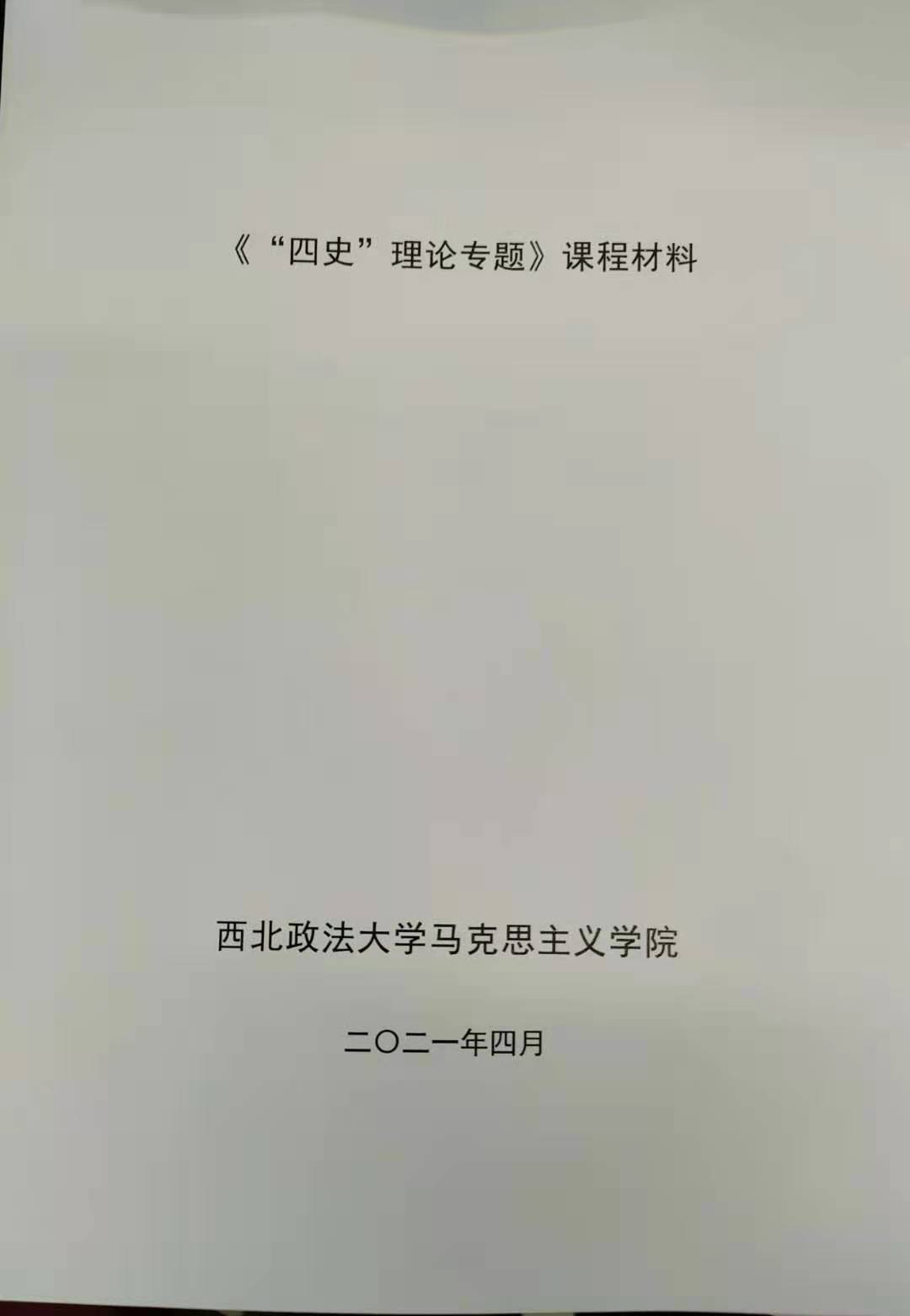 教学安排实际并结合课程情况,决定将“四史”整合开设,定名为《“四史”理论专题》,采取专题教学方式,实行团队教学。由中国近现代史纲要教研室主任赵琳老师作为课程负责人具体准备材料,向教务处申报开设课程。目前,课程申报表、说明、大纲及教案等材料已经全部提交教务处,拟作为面向全校本科生的大思政类限定选修课申报于下半年正式开设。