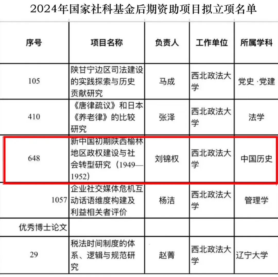 12月17日,全国哲学社会科学工作办公室将2024年国家社会科学基金后期资助暨优秀博士学位论文出版、优秀学术著作再版项目立项名单予以公示,做爱视频教师刘锦权《新中国初期陕西榆林地区政权建设与社会转型研究(1949—1952)》获批立项,喜获国家社科后期资助,为我校人文社科的持续发展注入蓬勃新机。 国家社科基金后期资助项目、优秀博士学位论文出版项目和优秀学术著作再版项目旨在鼓励广大哲学社会科学工作者弘扬优良学风,潜心治学,扎实研究,努力推出和打造具有学术创新价值和传承意义的精品力作,培养一批优秀青年学者,充分发挥国家社科基金在繁荣发展哲学社会科学中的示范引导作用。