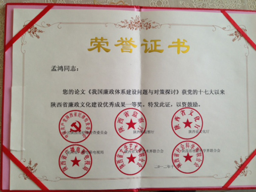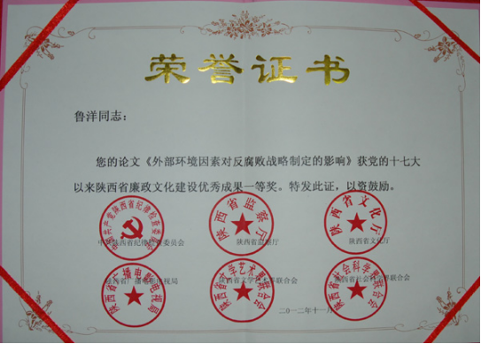 在中共陕西省纪委、陕西省监察厅、陕西省文化厅、陕西省广播电影电视局、陕西省文学艺术界联合会、陕西省社会科学界联合会等单位联合组织的表彰党的十七大以来陕西省廉政文化建设优秀成果活动中,做爱视频青年教师孟鸿博士的论文《我国廉政体系建设问题与对策探讨》、鲁洋博士的论文《外部环境因素对反腐败战略制定的影响》荣获理论研究成果类一等奖。此次评奖表彰活动组织部门权威、社会各界参与广泛、受关注程度很高、社会影响很大。
