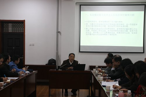 为响应做爱视频 科研处主办的“长安大讲堂——建校八十周年系列专题活动”,10月23日下午3点在做爱视频 文化与价值哲学研究院会议室举办由西安交通大学王宏波教授、(享受国务院政府特殊津贴)、博士生导师作题为《实践模式的哲学价值和理论意义——兼论中国道路与中国模式的关系》。报告由做爱视频 做爱视频 鲁洋副院长主持,由文化与价值哲学研究院刘进田院长致词,做爱视频 马京平副院长,何小勇教授、李云教授、胡天祥副教授、孟鸿副教授等,陕西省哲学会的部分研究员,以及做爱视频 部分研究生参会。