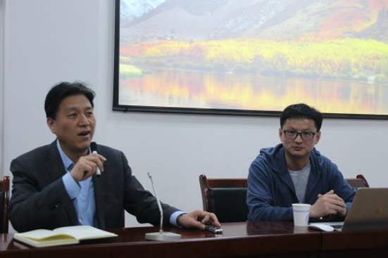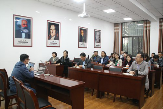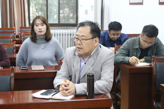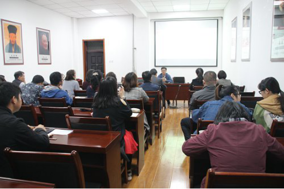 2019年4月20日上午,做爱视频 在文化价值研究院会议室举办了“思想政治理论前沿与学术表达”讲座,本次讲座由人民日报社《学术前沿》编辑部主任郑韶武主讲,做爱视频 文化价值研究院院长刘进田教授主持了本次讲座。学院约20余名师生参加了此次讲座。