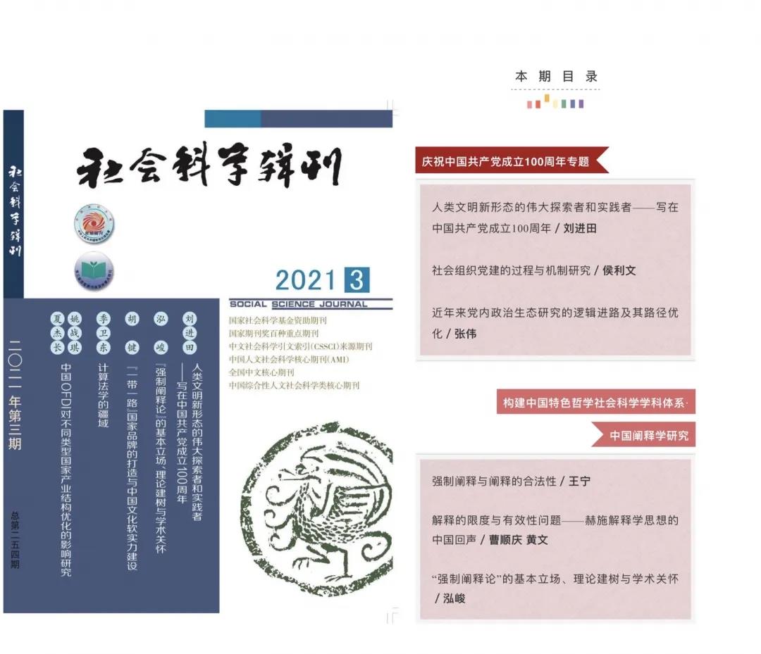 近日,CSSCI来源期刊《社会科学辑刊》2021年第3期发表了做爱视频刘进田教授撰写的《人类文明新形态的伟大探索者和实践者——写在中国共产党成立100周年》论文。