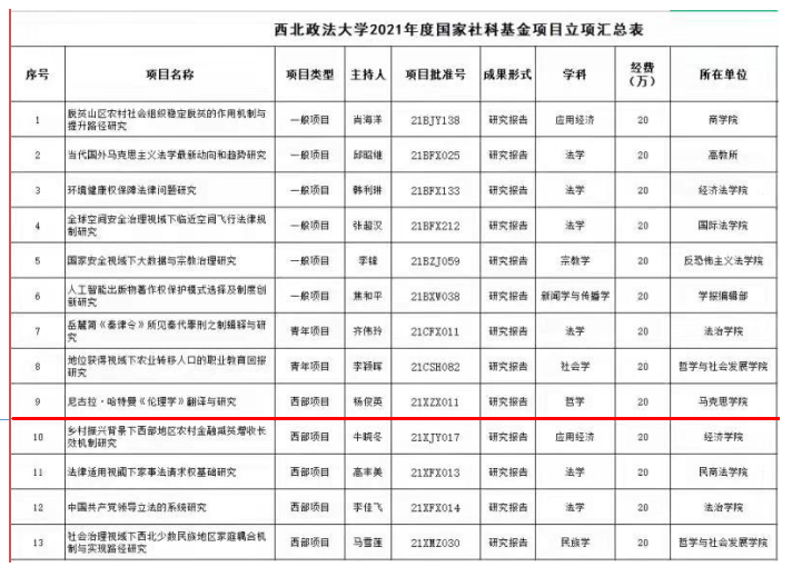 2021年9月24日,全国哲学社会科学工作办公室正式公布了2021年度国家社科基金年度项目、青年项目和西部项目最终立项结果。