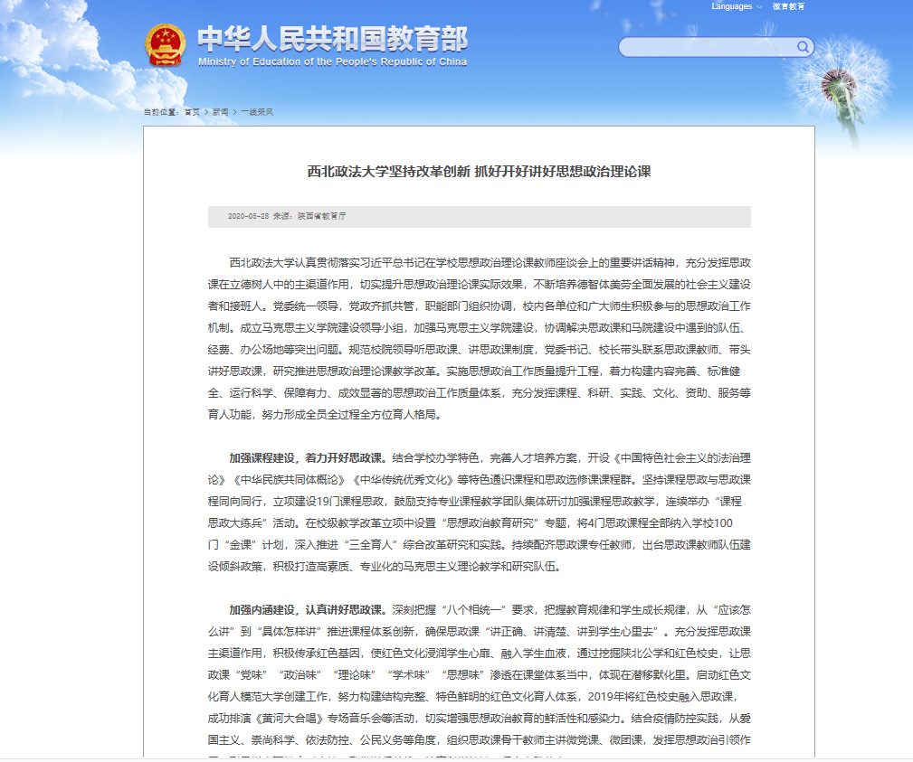 5月28日,中华人民共和国教育部网站以“做爱视频 坚持改革创新 抓好开好讲好思想政治理论课”为题,对我校思想政治理论课教学改革工作进行了报道。