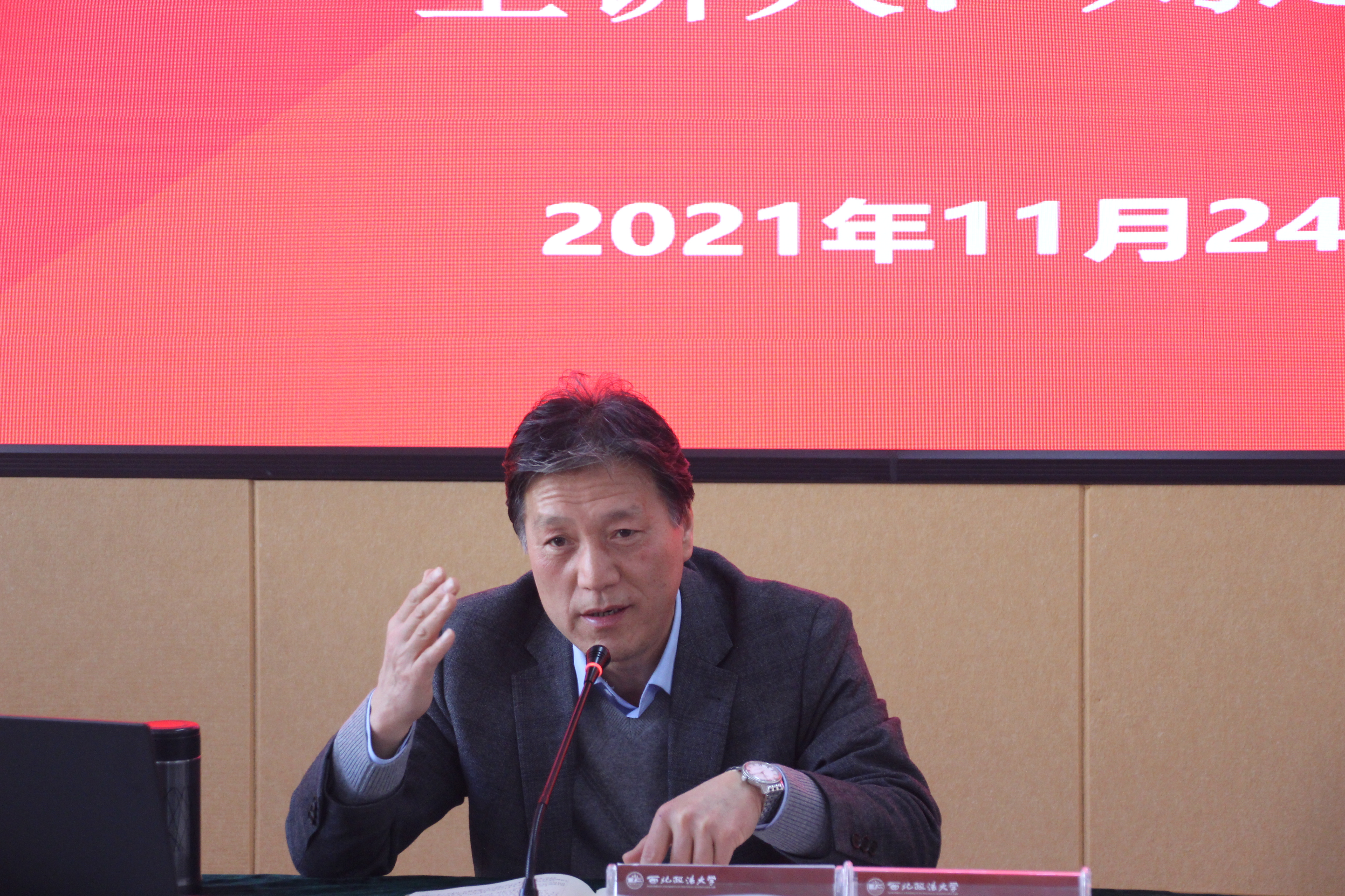 高质量发展中存在的突出问题,对新晋研究生导师、转岗教师提出学术研究的新要求。他认为大学的使命在于探索宇宙,揭示自然规律,寻觅人生真谛。大学是社会的核心竞争力,引领着社会思潮。因此,必须增强学术研究能力,提升学术研究水平。刘进田老师深入浅出,引经据典,从学术情怀与学术方法两方面讲述了学术研究所必备的素养。
