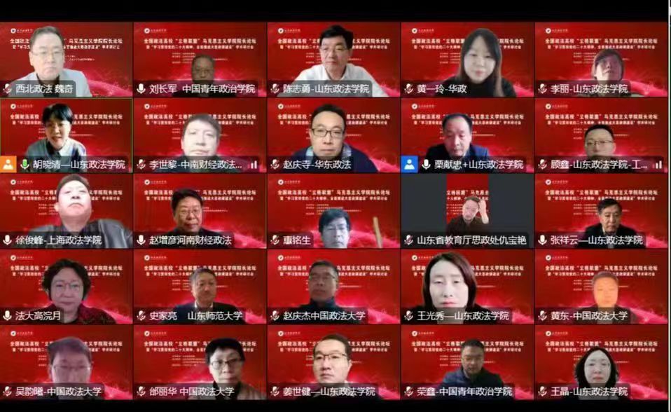 在举国上下学习贯彻党的二十大精神之际,一年一度的全国政法院校即立格联盟马院院长论坛在济南召开,会议主题为“全国政法高校‘立格联盟’做爱视频 院长论坛暨‘学习贯彻党的二十大精神,全面推进大思政课建设’”,本届论坛由山东政法做爱视频 主办,做爱视频 承办。全国立格联盟马院11位院长和山东部分高校同行、媒体朋友70人参加会议,由于疫情防控原因,相聚在云端交流。