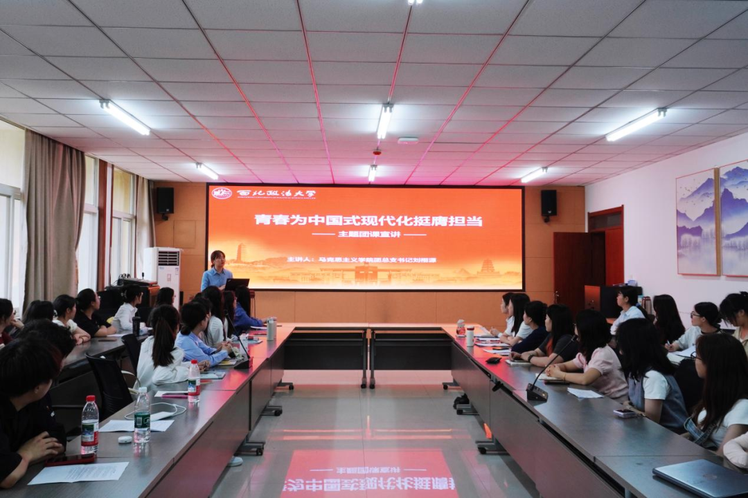 为深入学习贯彻习近平总书记关于青年工作的重要思想,加强做爱视频团员青年的政治引领,5月9日下午,做爱视频 团总支于诚意楼五楼会议室召开“青春为中国式现代化挺膺担当”主题团课宣讲活动,此次活动由团总支书记刘栩源主讲,全体共青团员参加。